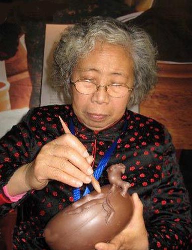 汪寅仙,1943年生于江蘇宜興丁山丁南村,中國工藝美術(shù)大師,全國勞動模范,全國三八紅旗手,江蘇省“有突出貢獻(xiàn)的中青年專家”,中國工藝美術(shù)學(xué)會會員,宜興紫砂文化藝術(shù)研究專委會顧問。曾任宜興紫砂工藝廠副總工藝師、宜興紫砂研究所副所長等職。  汪寅仙曾任宜興紫砂工藝廠副總工藝師、宜興紫砂研究所副所長等職。汪寅仙大師是我國第一批國家非物質(zhì)文化遺產(chǎn)名錄項目之一紫砂制作技藝傳承代表人。 源于生活,高于生活是她的藝術(shù)追求,抽象與自然寫實相結(jié)合是她的壺藝風(fēng)格。  中國陶都陶瓷藝術(shù)國際博覽中心無錫藝術(shù)館收藏有汪寅仙的代表作《松柏壺》。 |