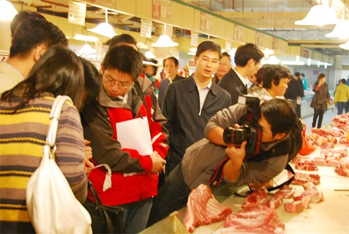 新華社、人民日報(bào)、中央電視臺、中央人民廣播電臺、中國日報(bào)、新浪網(wǎng)等10多家媒體代表分別對朝陽集團(tuán)在農(nóng)產(chǎn)品流通過程中的管理、農(nóng)產(chǎn)品溯源工作進(jìn)行了采訪。朝陽集團(tuán)總經(jīng)理?xiàng)钆d德向商務(wù)部領(lǐng)導(dǎo)和媒體代表詳細(xì)介紹了有關(guān)情況。