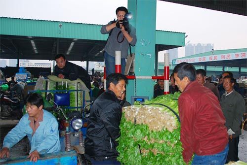 10月28日下午,剛剛開市的無錫朝陽農(nóng)產(chǎn)品大市場地產(chǎn)蔬菜區(qū)聚集了一群特殊的客人。