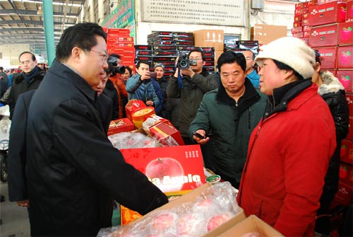 楊書記對朝陽集團發揮農產品保價穩供、安全放心的積極作用予以高度肯定,他叮囑道:朝陽批發市場代表著政府形象,關系著百姓生活,一定要切實加強監管,維持良好秩序,確保市場供應和質量安全,努力平抑物價。