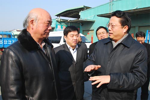 隆冬的江南大地,低溫寒風依舊,但明媚的陽光預示著春天腳步的臨近。節前的朝陽農產品大市場,也早已是車水馬龍、熱鬧非凡。朝陽集團董事長張海良向楊書記一行介紹了市場為確保節日蔬菜、糧油等與居民生活密切相關的商品供應所做的不懈努力,展示了蔬菜農藥殘留檢測中心、信息中心、交易結算中心的運作模式。楊書記還饒有興趣地與市場內的經銷商戶交談,了解商品來源和銷售情況。