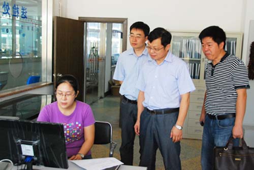 無錫朝陽股份有限公司總經理朱健祥介紹了蔬菜備案中心的建設情況,工作人員展示蔬菜備案及農產品電子交易計結算流程。張處長對無錫市實施肉菜溯源系統的進程邊干事肯定。