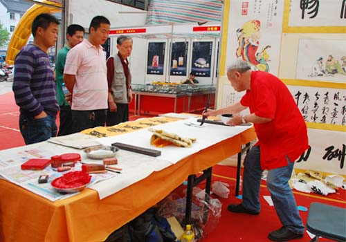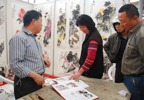 5月3日,"全國百名名人書畫收藏品展”在無錫朝陽文化工藝品市場北廣場隆重開展。