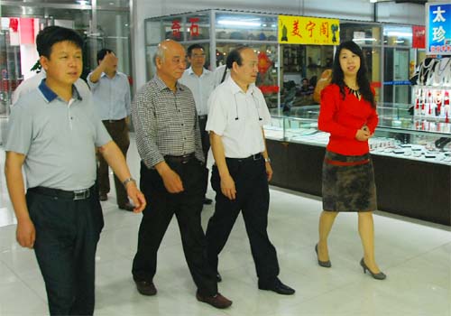 在無錫文化工藝品市場內,揚州考察團一行詳細考察了市場每層樓面的經營品類情況,了解市場店鋪布局和經營情況,對市場在建成后短短半年多時間內在項目建設、招商、經營等方面取得的成績表示贊許,對市場能引進諸多中國知名的民俗工藝精品贊不絕口。