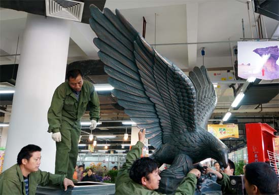 “大鵬一朝乘風起,扶搖直上九萬里”,近日,一座以雄鷹展翅為題材的青銅雕塑落戶無錫朝陽集團文化工藝品市場。