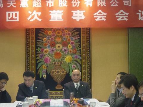 2012年12月15日上午,無錫天惠超市股份有限公司在集團公司三樓第二會議室召開了五屆四次董事會會議,董事會成員:張海良、張慶卿、楊興德、華泉榮、錢韌、邵裕妹、朱健祥、張恒、范錫炎、羅志堅、楊小虹出席了會議。監事會組成人員及財務部陳曉列席了會議。會議由董事長張慶卿先生主持。