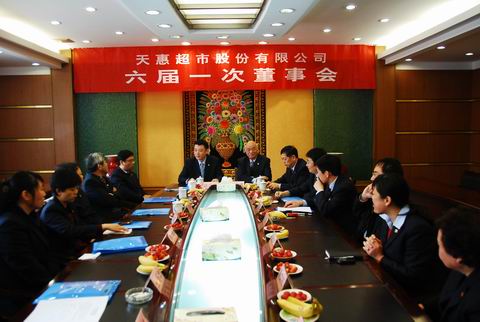無錫天惠超市股份有限公司2013年3月16日上午8:00在無錫朝陽集團公司三樓第二會議室召開了天惠超市五屆五次董事會,會議由天惠董事長張慶卿主持,會上推薦了新一屆董事會、監事會候選人。上午9:00在朝陽集團公司二樓第一會議室召開了天惠超市第十一次股東大會,大會聽取和審議了總經理羅志堅先生所作的行政工作報告;聽取和審議了財務部長陳曉所作的財務工作報告、利潤分配預案和關于增加公司注冊資本的議案;聽取和審議了監事會主席鮑文梅所作的監事會工作報告;聽取和審議了黨委書記陳志蘭關于修改公司章程的方案,并進行了董事會和監事會成員的換屆選舉。