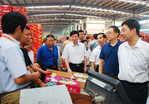 9月12日上午,無錫市委副書記、代市長汪泉,副市長劉霞等市政府領導,率無錫市商務局、物價局等部門成員,來到無錫朝陽集團農產品大市場,調研無錫農產品流通情況和中秋國慶兩大節日供應工作。