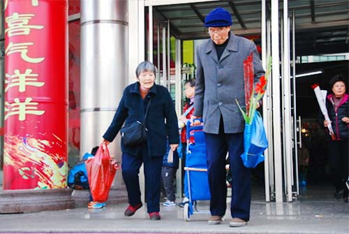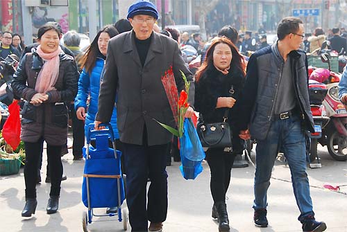 在選購鮮花、盆花的顧客中,同樣不乏老年人的身影。一位老伯和他的婆姨,選購了一盆杜鵑、一束銀柳,老伯還別出心裁地選了一支艷麗的紅菖蒲,然后緩步來到朝陽農貿市場繼續購物。