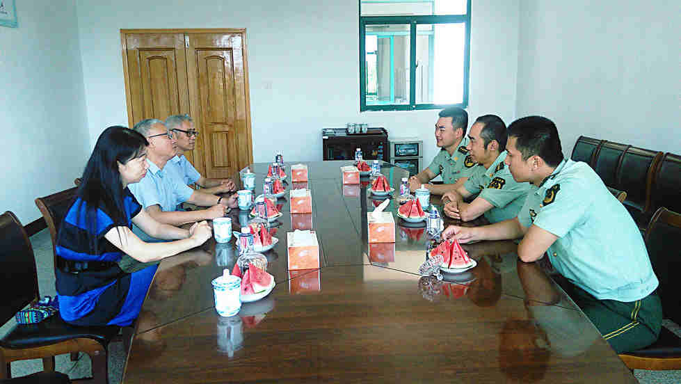 走進連隊大門,直工科王參謀、警衛連馬指導員和鄒連長帶領全體連隊官兵夾道歡迎集團領導的到來;而集團領導也為連隊官兵們奉上了飽含軍民魚水情的新鮮瓜果,讓官兵們在炎炎夏日也享受到一份清涼。在會議室,大家回顧了軍民共建20多年來的歷史往事,都非常珍惜和重視這份共建情誼,并期待今后雙方能夠開展更豐富的共建活動,拉近彼此的距離,增進雙方的互動。之后,在連隊領導的陪同下,集團領導參觀了部隊榮譽室和官兵營房,光輝的榮譽、嚴格的紀律、一絲不茍的作風和積極向上的正能量,也給參觀者留下了非常深刻的印象。