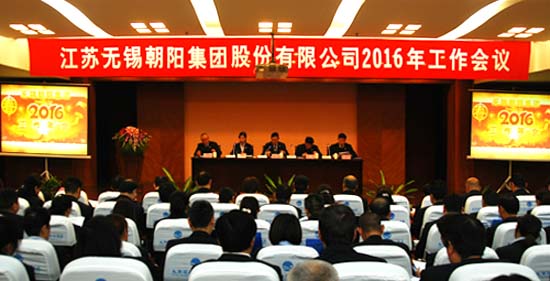 凱歌高奏辭舊歲,豪情滿懷迎新年。2016新的一年款款而來,承載新的夢想,開啟新的希望。2016年元月2日—3日,江蘇無錫朝陽集團股份有限公司2016年工作會議在太湖明珠國際大酒店隆重召開。集團總經理室、集團科室、各基層單位經營班子和干部職工代表共92人聚首太湖之濱,共商企業發展大計。 大會期間,與會代表認真聽取和審議了2015年集團公司行政工作報告和黨委工作報告。兩份報告總結了集團公司2015年全年的整體工作,回顧了取得的成績和存在的不足,并對2016年工作進行了部署。會上,還對2015年在各項競賽活動中脫穎而出的先進集體和先進個人進行了隆重表彰。