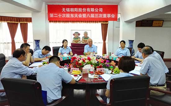 無錫朝陽股份有限公司第二十次股東大會暨八屆三次董事會于2016年7月8日在錫澄大廈五樓會議室隆重召開。會議由董事長張海良先生主持。 會議審議通過了《行政工作報告》、《財務工作報告》、《關于公司2014-2015年度利潤分配方案》、《監事會工作報告》、《關于修改公司章程的議案》、《關于繼續從稅后利潤中提取獎勵基金實施激勵的議案》、《關于確認吸收合并子公司無錫朝陽農產品大市場有限公司的議案》。 會議同意翟凌因工作需要提出辭去財務部長的請求,決定聘任錢浩淵為公司財務部長。 會議同意公司2016年度經營目標。 會議相信在董事會的正確領導下,在公司全體干部職工的共同努力下,朝陽股份公司將高舉菜籃子大旗,緊緊圍繞隊伍建設和現代化品牌市場建設的目標要求,細化和落實五年計劃,勇往直前,為打造“百年朝陽”而不懈努力!