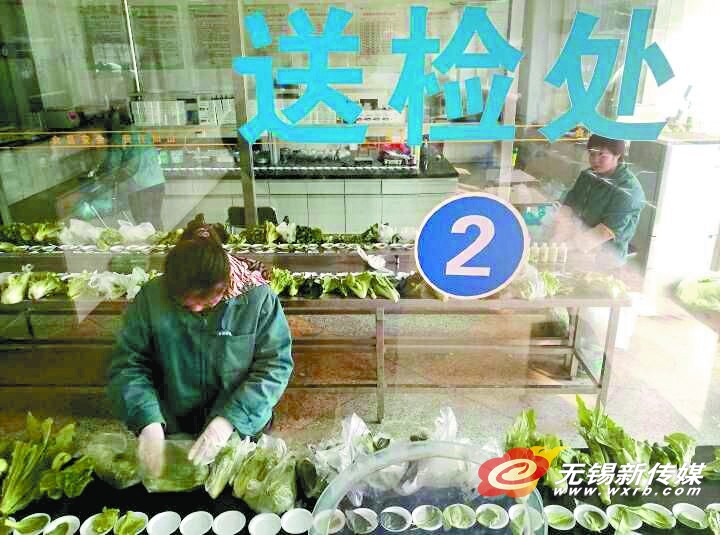 24日,我市朝陽蔬菜批發市場的檢驗人員正對所有即將流入市場的蔬菜進行農藥及重金屬是否超標檢測,確保市民菜籃子的安全。