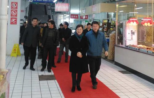 | 3月10日上午,無錫市梁溪區(qū)人大副主任周克剛、區(qū)商務(wù)局、工商局等部門領(lǐng)導(dǎo)陪同蘇州市姑蘇區(qū)人大副主任蔣滿新一行來到曹張農(nóng)貿(mào)市場考察調(diào)研。天惠超市公司總經(jīng)理翟凌接待了訪客人,并向他們介紹了曹張農(nóng)貿(mào)市場改造后的經(jīng)營情況和低進(jìn)嚴(yán)管運(yùn)營理念。 考察期間,來訪客人一行參觀了曹張農(nóng)貿(mào)市場和天惠超市曹張店,對天惠超市公司農(nóng)加超的運(yùn)營模式給予了積極評價(jià);對天惠超市公司為無錫市菜籃子保供穩(wěn)價(jià)所做的工作給予了充分肯定。
