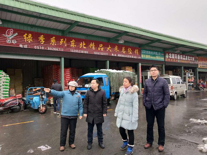 暴雪天氣暫告段落,1月28日中午,無錫糧食局副局長吳莉萍帶領(lǐng)調(diào)控處等下屬處室主要負(fù)責(zé)人一行來到朝陽糧油市場,了解春節(jié)前期市場糧油供應(yīng)情況。