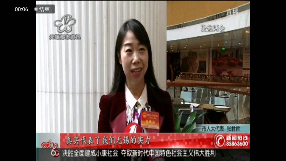 昨天是無錫市十六屆三次人代會召開的第一天,市人大代表、朝陽集團董事長張君君在會議期間,分別接受了《無錫新聞》、《今晚60分》等電視臺欄目記者的采訪,熱議李小敏書記講話和《政府工作報告》。