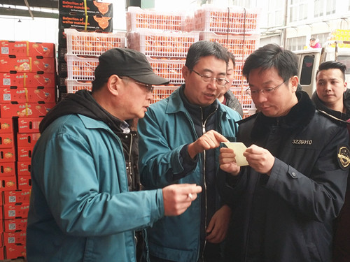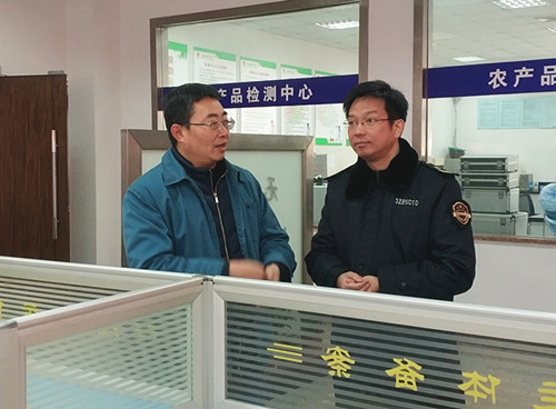 胡局一行先后來到監(jiān)控中心、蔬菜備案中心、檢測中心、結(jié)算中心,聽取了朱總就大市場在溯源體系建設(shè)、蔬菜準(zhǔn)入、農(nóng)產(chǎn)品檢測、食品安全維護等工作的匯報。隨后他們又來到蔬菜、水果、家禽市場,現(xiàn)場檢查了農(nóng)產(chǎn)品在市場流通的各個環(huán)節(jié),了解了索證索票、消毒消殺等工作的執(zhí)行落實情況,對市場在食品安全方面所做的工作表示認可,并希望市場在春節(jié)期間進一步加強食品安全工作,確保消費者買得放心、吃得放心。