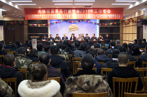 12月4日上午,無(wú)錫蔬菜果品行業(yè)協(xié)會(huì)2019年工作年會(huì)暨無(wú)錫朝陽(yáng)農(nóng)產(chǎn)品大市場(chǎng)與全國(guó)蔬菜果品生產(chǎn)基地、無(wú)錫天惠超市與無(wú)錫市蔬菜生產(chǎn)基地2020年蔬果產(chǎn)銷(xiāo)合作簽約會(huì)在朝陽(yáng)農(nóng)產(chǎn)品大市場(chǎng)二樓會(huì)議室召開(kāi)。協(xié)會(huì)會(huì)員、基地代表、朝陽(yáng)集團(tuán)、朝陽(yáng)股份和天惠超市主要領(lǐng)導(dǎo)近200人出席了會(huì)議。無(wú)錫市工商聯(lián)副主席竇林先生、無(wú)錫市民政局副調(diào)研員劉長(zhǎng)風(fēng)先生應(yīng)邀出席了本次會(huì)議。無(wú)錫日?qǐng)?bào)、江南晚報(bào)、無(wú)錫廣播電視臺(tái)等主流媒體記者到會(huì)采訪(fǎng)。