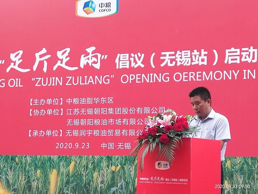 | 9月23日上午,中糧餐飲油“足斤足兩”倡議(無錫站)啟動儀式在無錫朝陽糧油市場隆重舉行。 活動儀式上,朝陽糧油市場攜手中糧油脂華東區共同發出倡導:“響應國家號召,厲行勤儉節約,倡導誠實守信;加強行業自律,推進糧食安全信用體系建設,踐行企業責任;我們倡議糧油經營戶要始終堅持誠信經營,重合同,守信用,堅持銷售合法合規、足斤足兩的糧油商品。 朝陽糧油市場總經理徐軍代表市場做了主旨發言,無錫朝陽糧油市場將一如既往的秉承食品安全監督的職責,繼續履行糧油安全保供的社會責任,全力保障無錫糧油供應安全,全力服務經營戶做大、做強,努力打造一個市民滿意、經營戶滿意的文明規范的糧油交易品牌市場。(楊敏)
