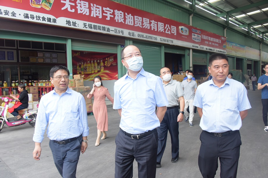 | 9月29日下午,梁溪區(qū)副區(qū)長(zhǎng)朱剛帶領(lǐng)區(qū)商務(wù)局、城管局、應(yīng)急局、市場(chǎng)監(jiān)督管理局、消防救援大隊(duì)、街道等相關(guān)部門人員,到朝陽(yáng)糧油市場(chǎng)進(jìn)行國(guó)慶、中秋節(jié)前安全生產(chǎn)及保供穩(wěn)價(jià)視察。朝陽(yáng)集團(tuán)黨委書記錢韌、朝陽(yáng)糧油市場(chǎng)總經(jīng)理徐軍陪同檢查。 朱副區(qū)長(zhǎng)詳細(xì)詢問了市場(chǎng)到貨、銷售情況及總體價(jià)格趨勢(shì),現(xiàn)場(chǎng)走訪多家門店查看客戶門店貨源,檢查安全經(jīng)營(yíng)情況,對(duì)市場(chǎng)總體工作情況較為滿意,并叮囑市場(chǎng)要為無(wú)錫市民守住“米袋子”,做好雙節(jié)期間糧油保供穩(wěn)價(jià)工作。(楊敏)  |