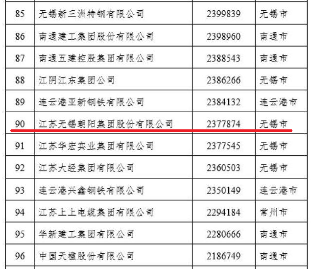 9月23日,江蘇省工商聯(lián)發(fā)布“2021江蘇民營(yíng)企業(yè)200強(qiáng)”榜單,江蘇無錫朝陽集團(tuán)股份有限公司位列第90位。