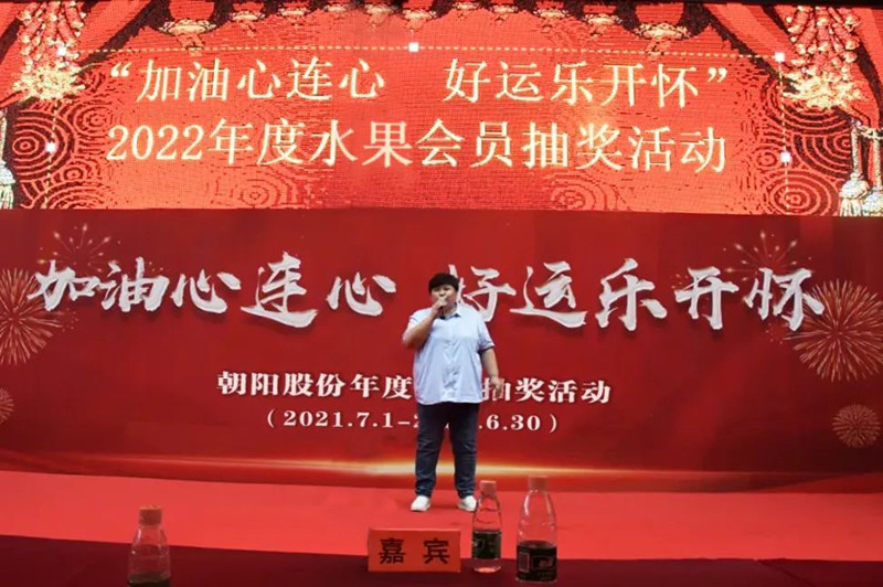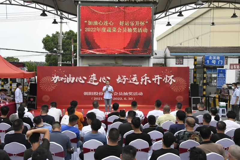 為了更好回饋廣大會員一直以來的信任、支持和厚愛,8月26日,無錫朝陽股份有限公司分別在蔬菜、水果兩大市場舉行了“加油心連心 好運樂開懷”2022年度會員抽獎活動。活動由兩大市場負責人主持,朝陽股份領導班子、市場員工、特邀嘉賓、會員共500余人參加了本次抽獎活動。