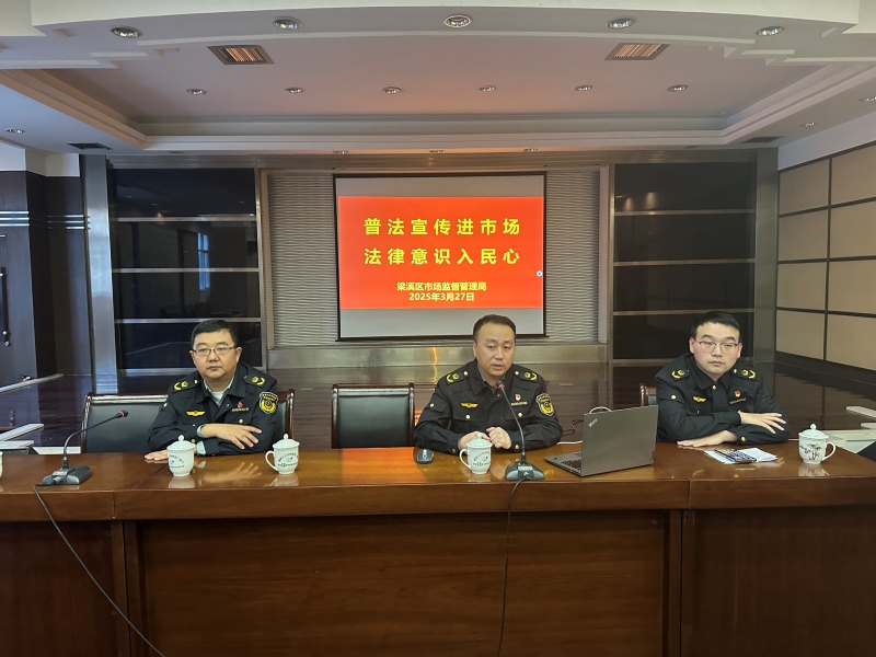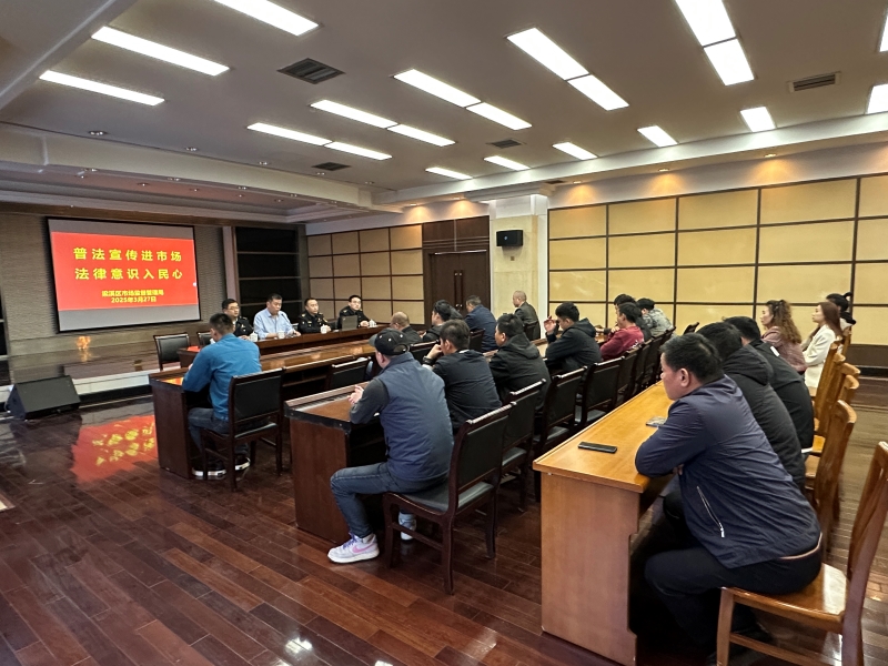 為加強市場經營戶法律法規意識、提高合規性經營行為、促進依法經營,3月27日下午,朝陽股份特邀梁溪區市場監督管理局執法稽查科苑威科長、執法大隊鄭源林科長、瞻江分局顧韜副局長一行到大市場開展“普法宣傳進市場 法律意識入民心”主題宣講活動。活動由朝陽股份工會主席尤勇主持。