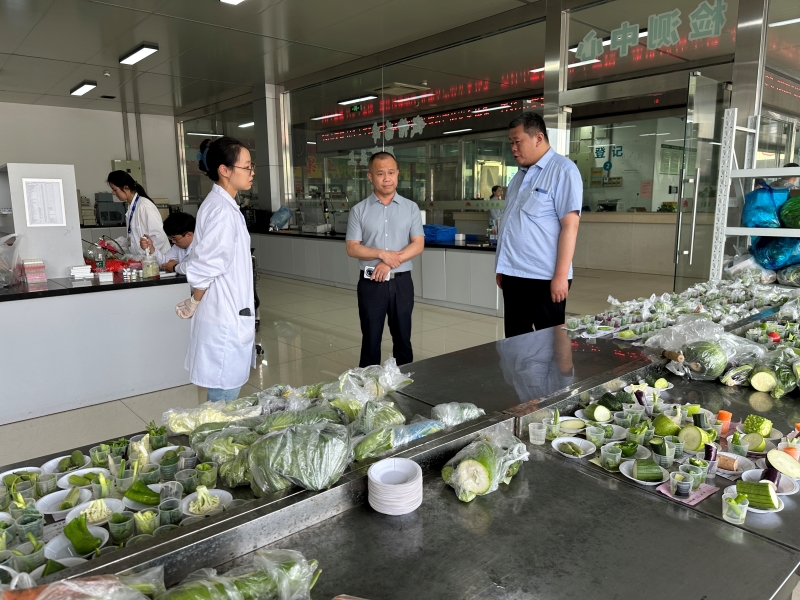 來訪客人先后參觀考察了朝陽陳列館、信息中心、檢測中心、結算中心、蔬菜、水果兩大市場、冷庫及糧油市場。尤主席向客人詳細介紹了市場的運營管理、建設發展,以及信息化建設方面的情況。