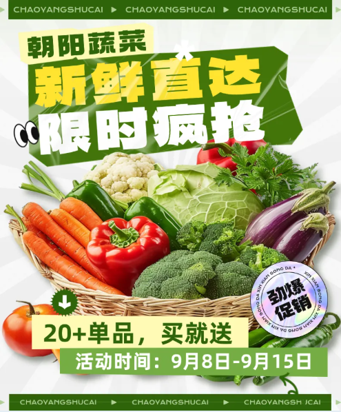 活動時間:9月8日-9月15日 繽紛鮮果 縱享甜蜜  夏末的風還帶著暖意 九月的感恩序曲已輕輕奏響 想對師長說聲感謝 一份新鮮菜果,就能讓心意滿溢 在朝陽農產品大市場 還藏著超驚喜勁爆價  選顆石榴表心意?的軟籽石榴超劃算! 勁爆價2.9元/斤,果肉顆顆飽滿, 咬下去滿是清甜汁水, 多囤幾箱送師友,性價比直接拉滿!  帶箱蜜橘傳溫情?現在入手超實惠! 蜜橘直降2.5元 / 斤,8公斤定包裝50元/件 橙黃的外皮輕輕一剝就開, 果肉入口爆汁,酸甜口感超解膩, 即刻搶購,新鮮省錢!  挑個哈密瓜送感恩?特價福利別錯過! 哈密瓜勁爆價1.9元 / 斤,比平時買省一半! 果肉脆嫩無絲,切開就能聞到濃郁甜香, 沉甸甸的分量里滿是誠意, 口口嘗到實實在在的甜蜜!  搶鮮蔬啦!特價福利別錯過! 20+品種蔬菜,鮮嫩水靈,價格實惠, 吃著新鮮又健康,性價比直接拉滿! 限時一周!多買多送!實惠到家! 朝陽農產品大市場 把對師長的感恩都藏進了 爆款菜果的 “抄底價” 中 讓每一顆菜果都新鮮看得見 每一個價格都實惠得心動 這個九月,來朝陽農產品大市場 用一口天然的甜,道一聲 “謝謝您” 讓感恩既有溫度,又有超高性價比! (供稿:張柯宇) |