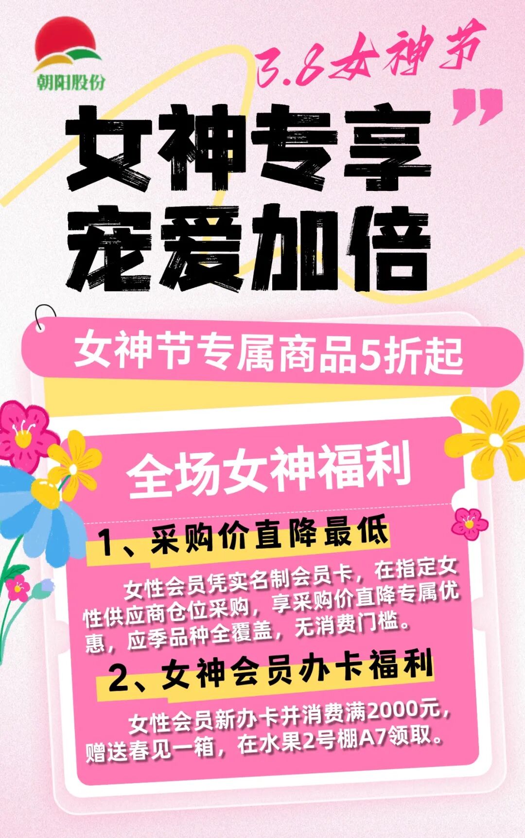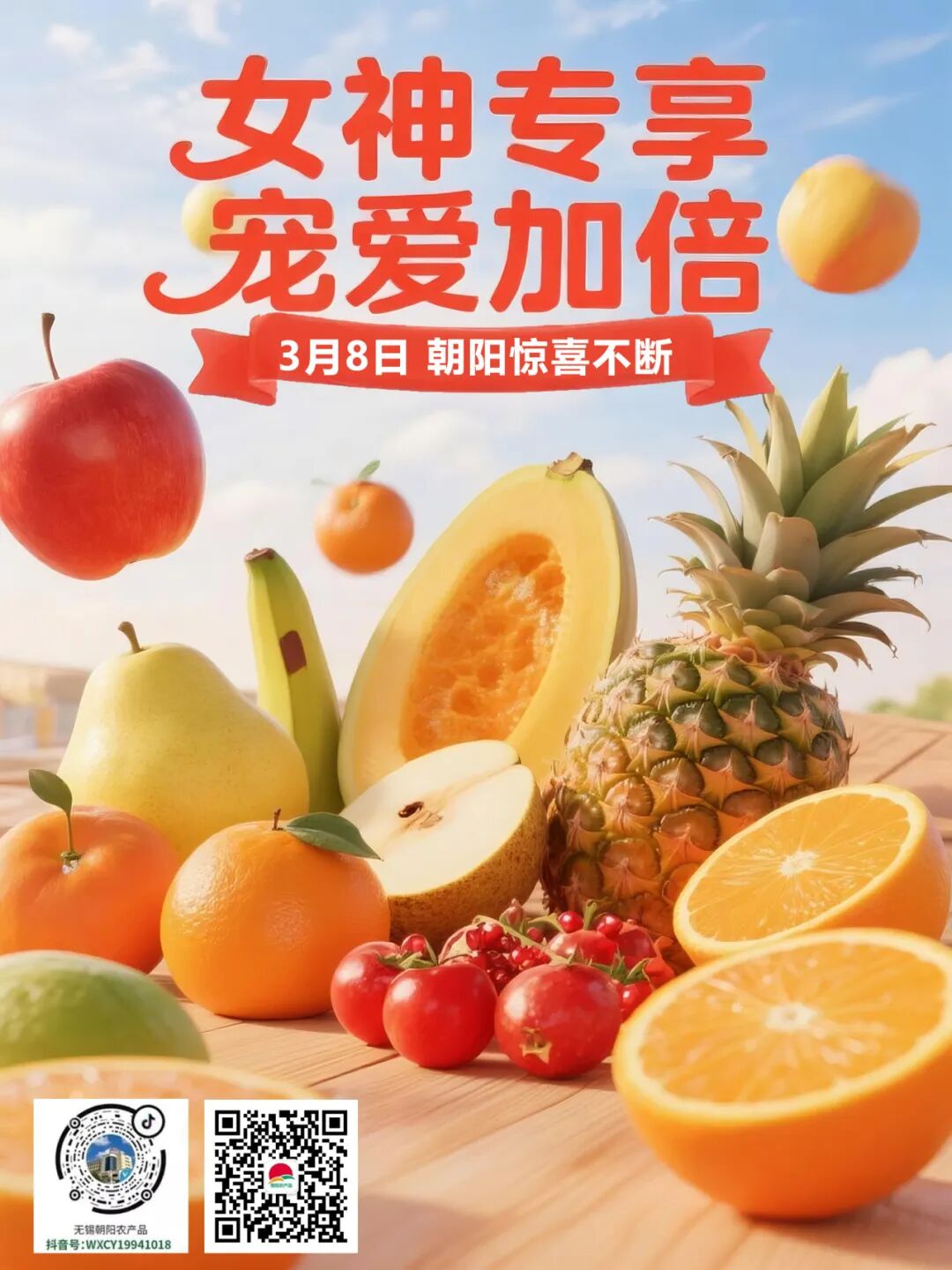 春風送暖,佳節將至,三八女神節如約而至!無錫朝陽水果批發市場專為各位女神定制專屬促銷狂歡,3月8日當天,全場鮮果讓利不停,寵粉福利拉滿,不管是日常補貨、批量采購,都能享實打實的批發優惠,新鮮好果超值購,女神專享,寵愛加倍!