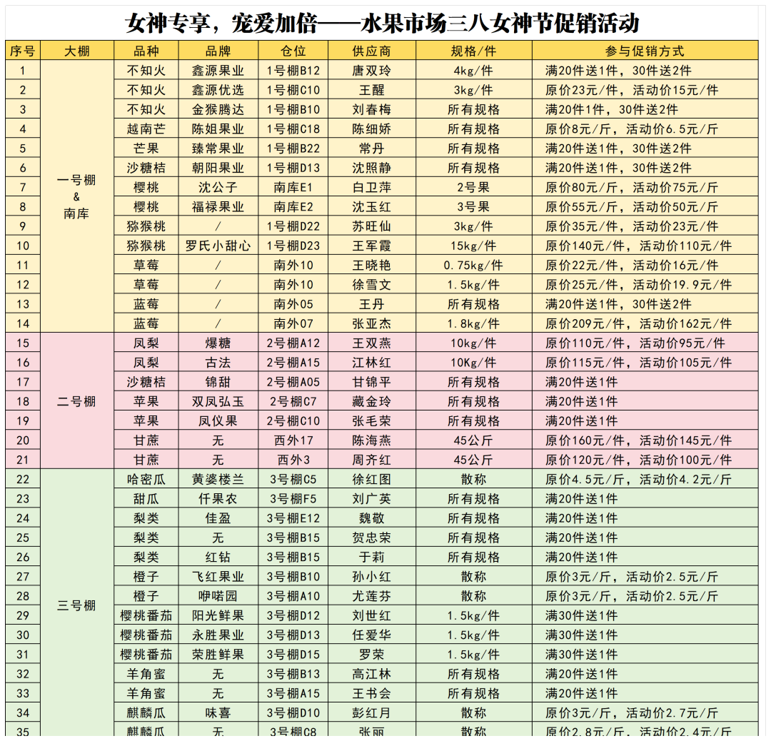 本次活動也為市場女性供應商送上專屬支持,活動期間,市場為參與促銷的女性供應商提供專屬促銷倉位,助力各位巾幗果商拓寬客源、提升銷量,攜手共贏女神節銷售熱潮!