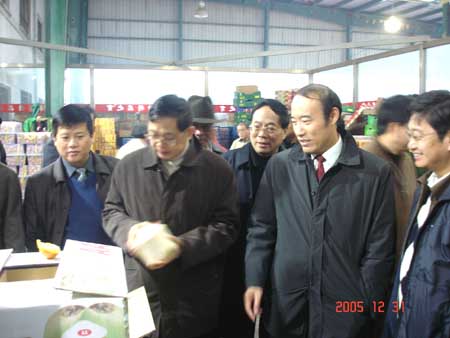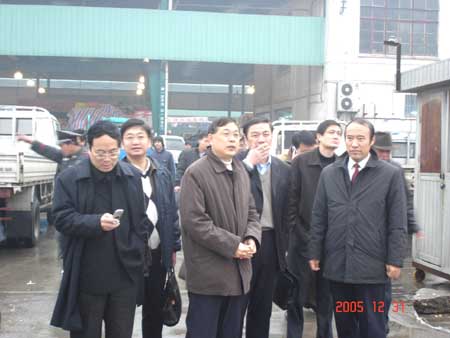 12月31日上午,無錫市副市長吳建選率市政府經貿委等有關職能部門的領導,來到朝陽農產品大市場了解節日供應情況,慰問市場職工和農產品經營戶。