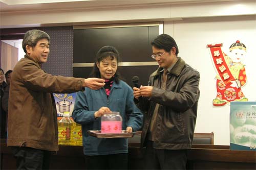 部分基層干部和集團公司的黨委書記、副董事長等領導同志還高興地為參加活動的職工抽獎。共抽出特等獎二個、一等獎5個、二等獎10個、三等獎20各、五等獎30個,中獎比例達到了參加活動人員總數的五分之一,凡沒有中獎的同志也都獲得了紀念獎。